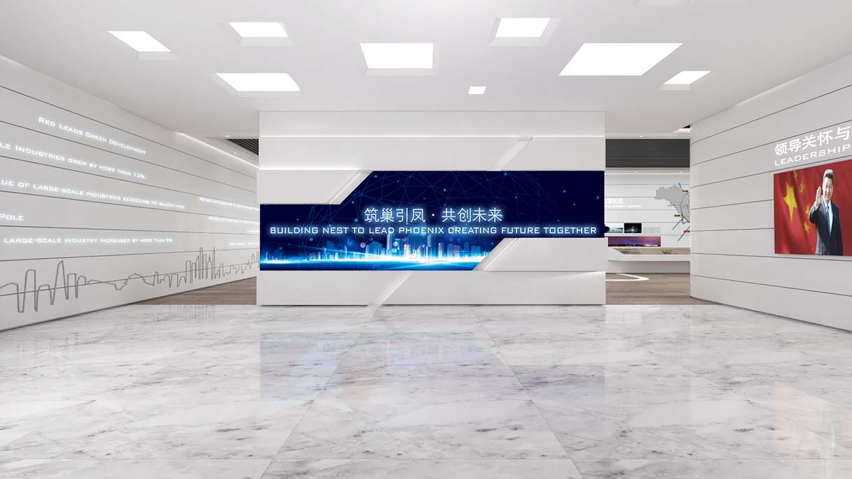 湖南祁陽經開區智慧展廳項目目標:以展廳空間的合理規劃與功能結構,展示園區的發展歷程,以及祁陽經開區各建設階段的成果,為園區產業建設提供支持。