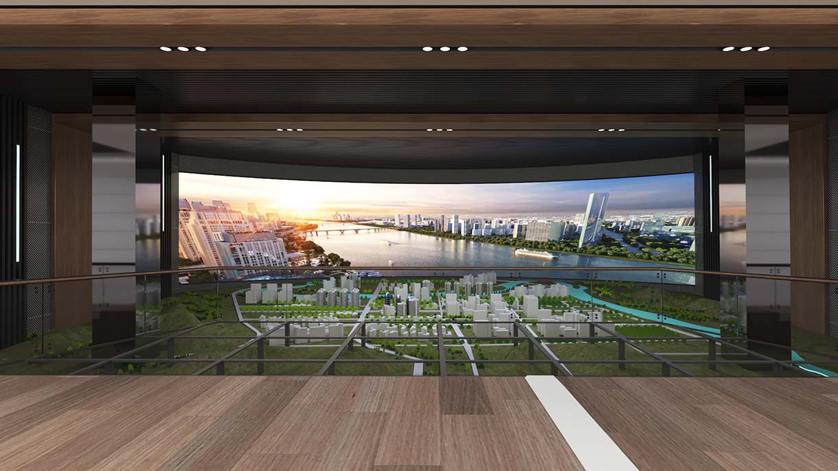 展廳多媒體設備:數字沙盤+弧幕影院