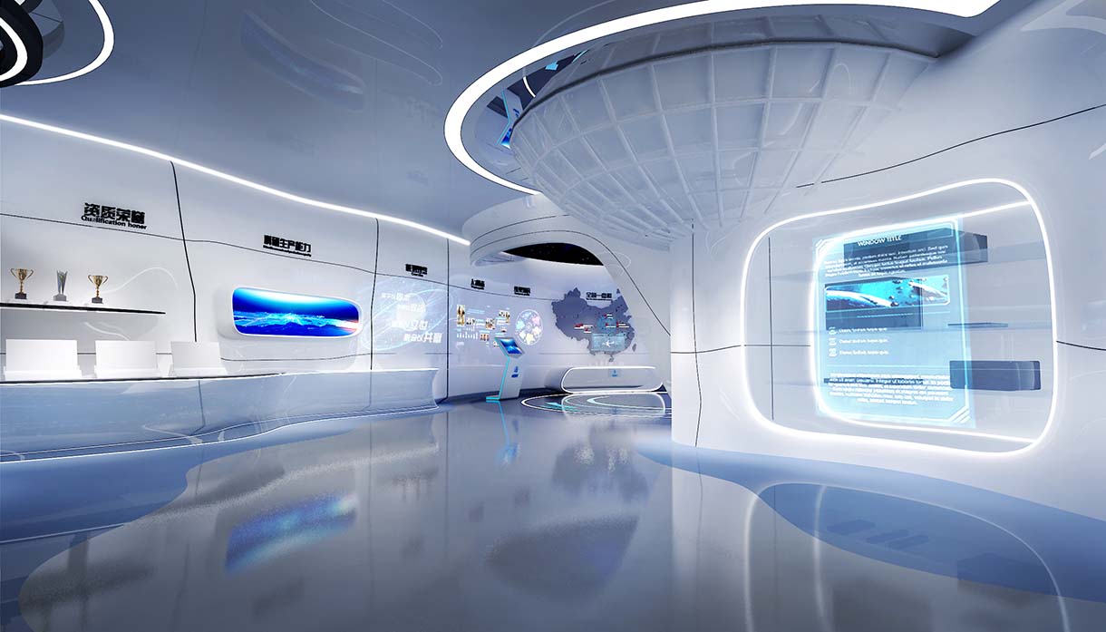 展廳多媒體設備:互動滑軌屏+VR虛擬現實+全息投影