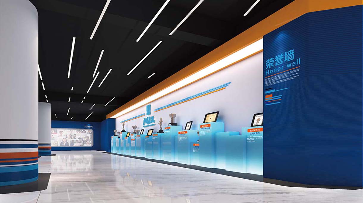 項(xiàng)目介紹:本項(xiàng)目是為廣州市建筑集團(tuán)有限公司設(shè)計(jì)的企業(yè)榮譽(yù)展示空間,占地面積560平方米。榮譽(yù)作為廣建文化建設(shè)的一部分,是廣建集團(tuán)在歷史長(zhǎng)河中的縮影,是廣建人的精神家園,對(duì)廣建未來(lái)的發(fā)展壯大起著重要激勵(lì)作用。