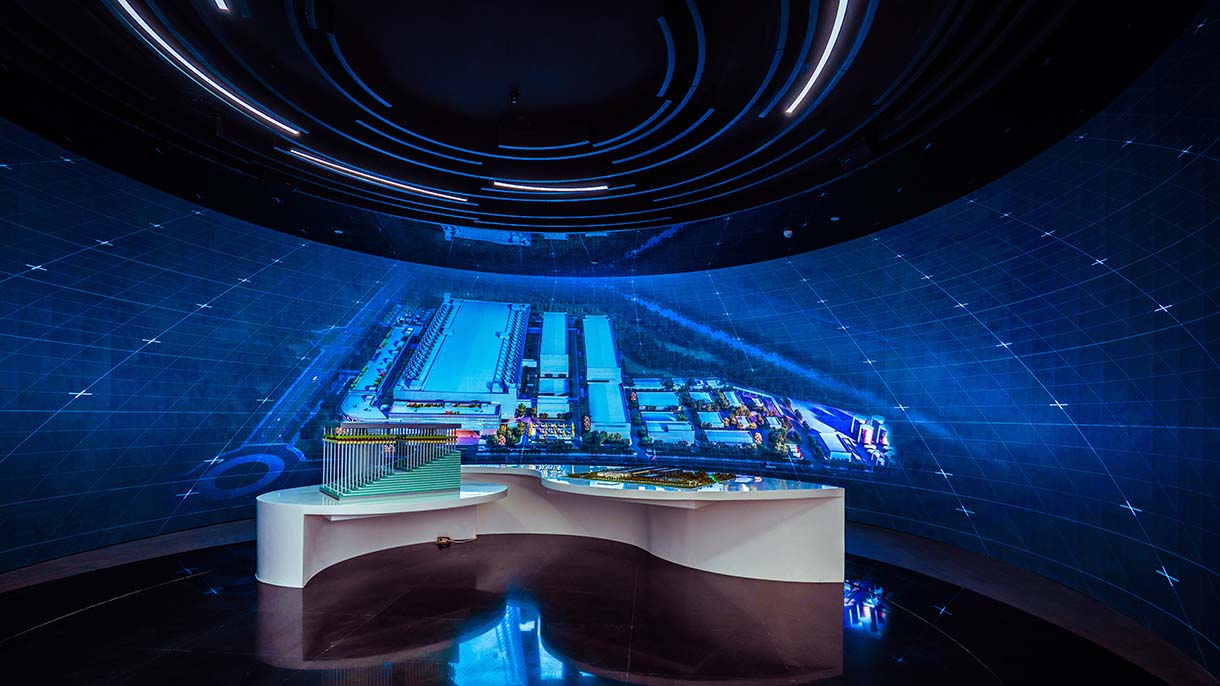 通過采用數字沙盤、弧幕影院、VR虛擬現實等數字展項,呈現出高度的真實性,給人留下更具沖擊性的視覺效果,并且還可以讓參觀者參與互動,以高科技展示手段結合藝術表現形式,打造一座承載著科技新生力量的前沿展廳。