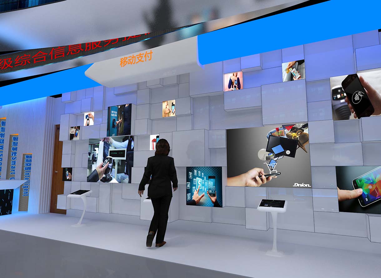 展廳設(shè)計(jì)策劃思路:展廳設(shè)計(jì)劃分三個(gè)大區(qū)域,分為政務(wù)、民生、產(chǎn)業(yè),把電信34個(gè)主要產(chǎn)品囊括在內(nèi),用智慧城市的概念詮釋主題,融入行業(yè)整體解決方案及互動(dòng)式體驗(yàn)設(shè)備,展示智慧、系統(tǒng)性和科技感,體現(xiàn)中國電信的核心價(jià)值,讓每個(gè)走進(jìn)展廳的人都能直接感知電信全新的產(chǎn)品和不斷突破的創(chuàng)新理念。